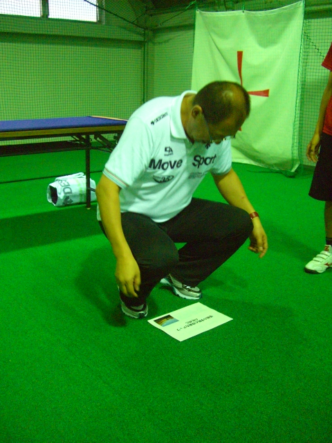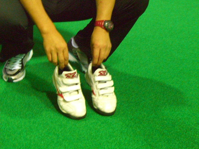 練習前に ポイントを置き その上をつま先を立て ポイントの上を数回跳ぶだけ。