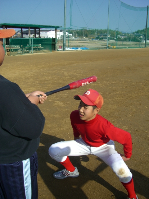 太もも(ひざ)を上げバットをまたぐ・・・・かなりキツイみたいですよ。
