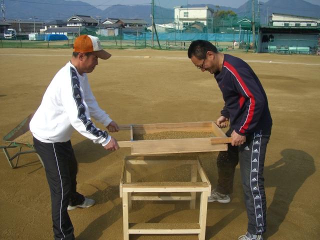 でも 子供の為 毎週毎週 試合に来てくれる相手チームの選手にケガさしたらあかん て 父母会会長と汗水流して作業してくれました。