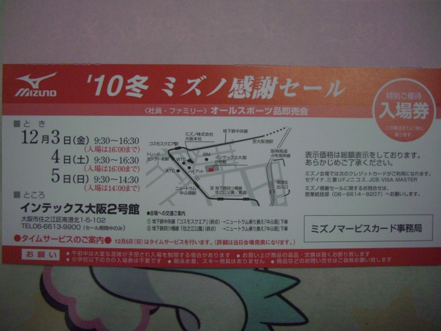 ミズノ感謝セールの招待状。