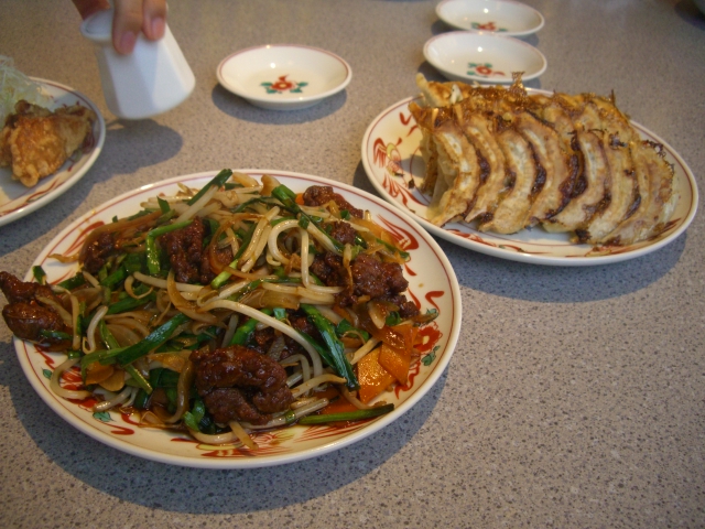写真 レバにら炒めとギョーザ 剣先イカの天ぷら バンバンジー