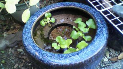 さっそく 別の睡蓮鉢から「メダカの喜ぶ草」を引っこ抜きセッティング。