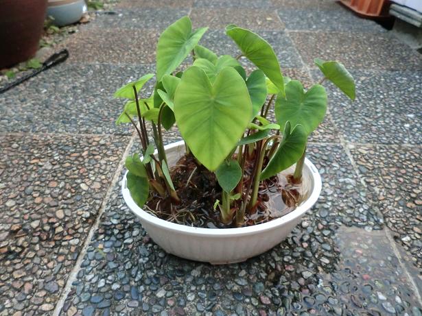 お土産に やつがしら(サトイモ)の水耕栽培。
