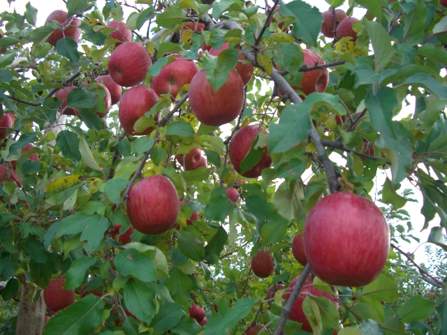 2枚目のりんごの写真はりんご園のりんごです。