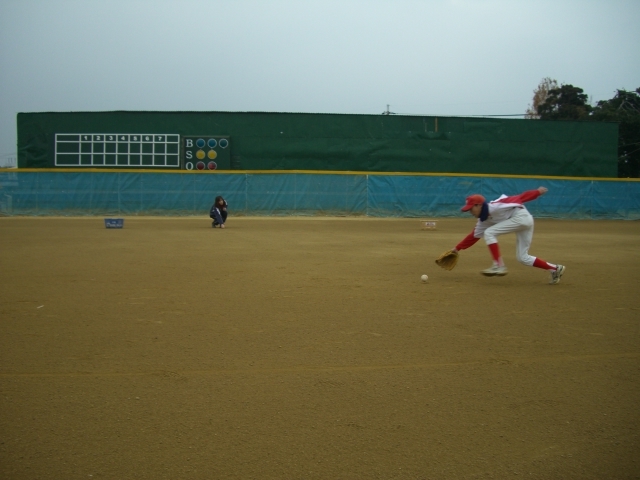 そこで、この前から外野でライト・センター・レフト定位置3箇所でゴロを転がし球際捕球練習。