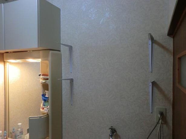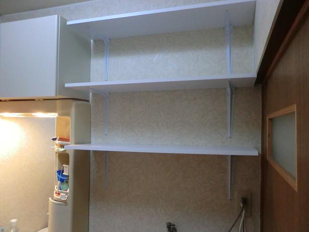 洗面所の洗濯機の上に棚をつけました。