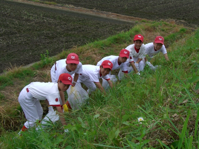 6月3日 選手・父兄・スタッフ 一丸になり草刈りを行いました。これから田植えの時期です。地域の皆様と一体となり環境を維持して行きましょう。 本当にご苦労様でした。 私は筋肉痛じゃありませんよ・・・