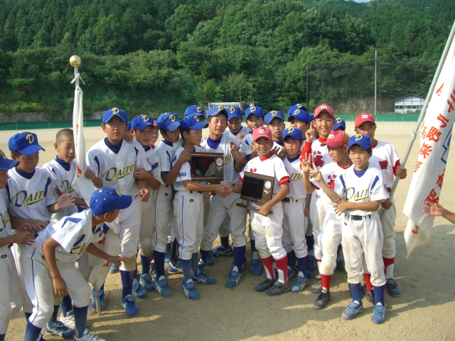 我がリーグ 小さなキャプテン 井ノ上君の満塁ホームランが飛び出し追い上げてくる大東リーグ様を振り切って 見事に