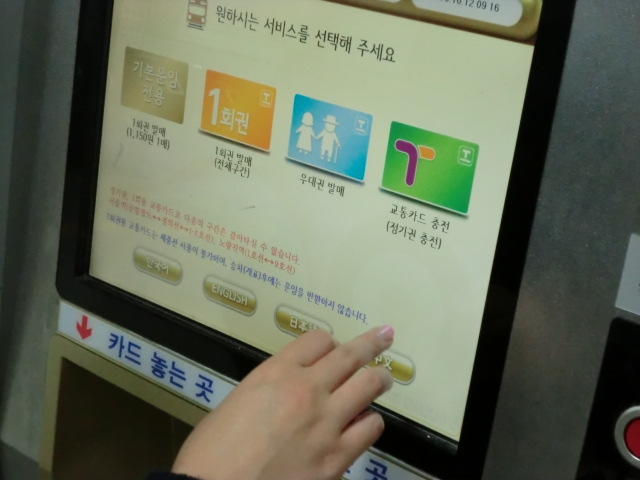 チャージすれば地下鉄やコンビ二で使える Tマネー(左はチャージの仕方)