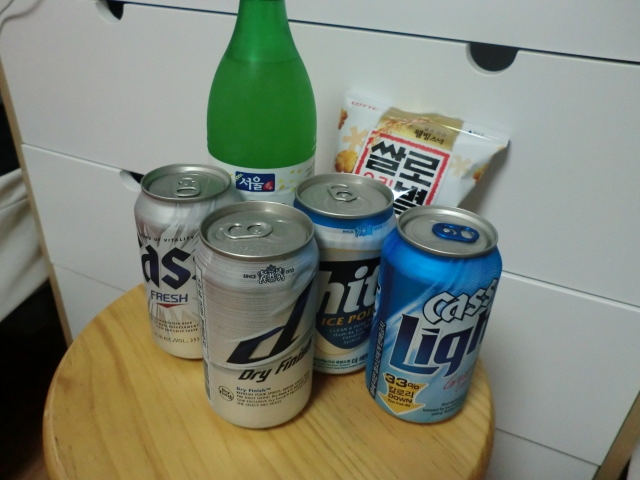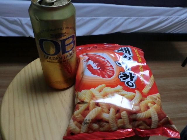 OBビールと韓国かっぱえびせんで乾杯!