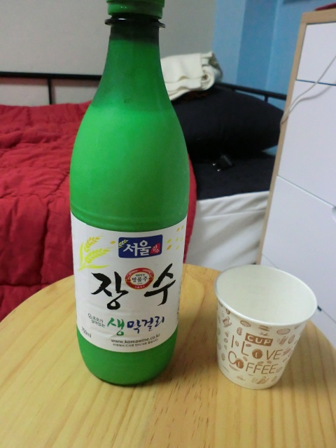 ホテルの受付でもらった マッコリを飲み干し 2日目終了!