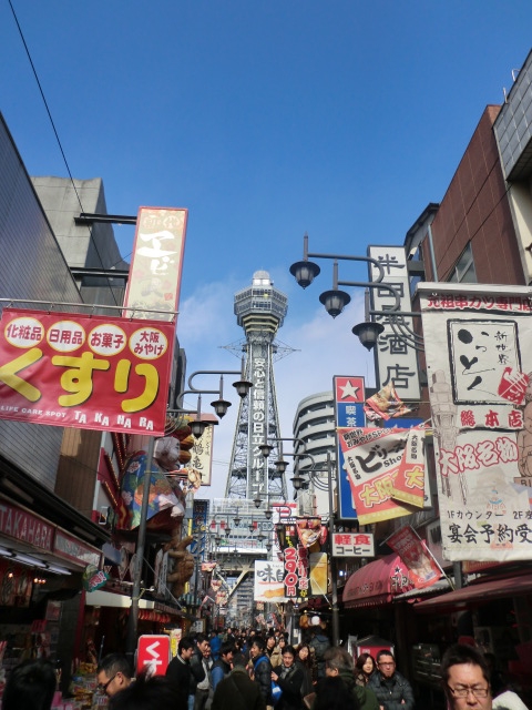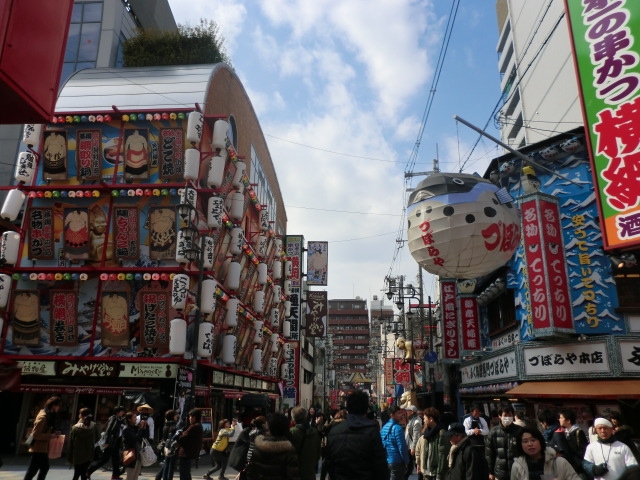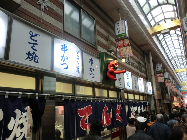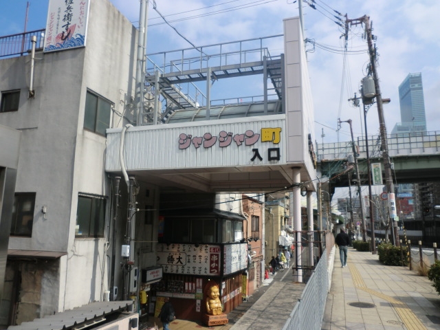 環状線「新今宮」で下車。スパワールドの前を通り ジャンジャン横丁へ。