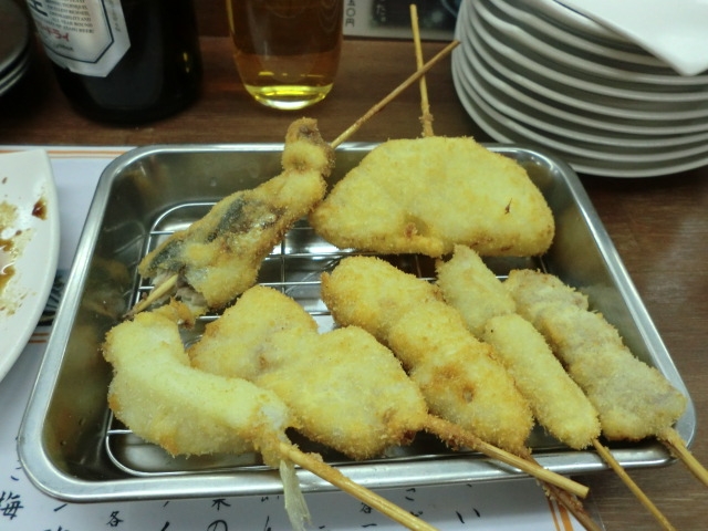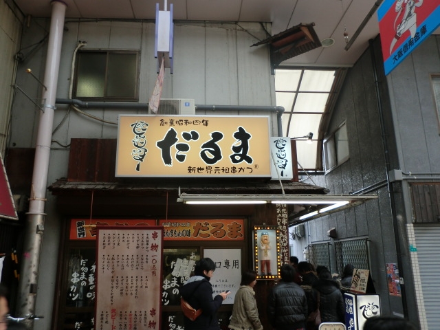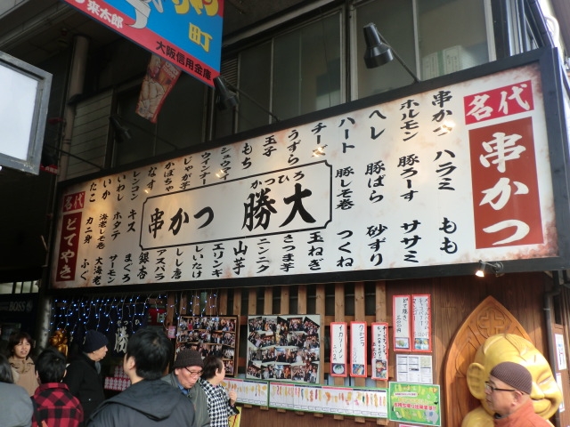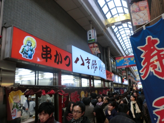 有名な串かつやさんはごらんの通りお昼を過ぎても並んでます。